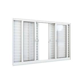 Veneziana 120x120 6 Folhas - Alumínio Branco - Linha 25 Suprema. Veneziana SEM GRADE com Vidro de 4mm, liso e incolor. Com 2 Folhas Veneziana Fixas e 2 Folhas Veneziana Móveis (de correr) + 2 Folhas de Vidro Móveis (de Correr). Com fecho na Central, vidro já incluso e pronta para instalar. Linha reforçada e resistente com um excelente acabamento. Não enferruja. De fabricação própria e com garantia de 3 meses.