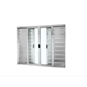 Veneziana 120x120 6 Folhas – Alumínio Brilhante – Linha 18 Modular Janela do tipo Veneziana com 2 folhas veneziana fixas e 2 folhas veneziana móveis (de correr) + 2 folhas de vidro móveis (de correr). Fecho central. Já vem com vidro incluso e pronta para instalar. Não enferruja. De fabricação própria.