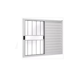 Janela do tipo Veneziana COM GRADE com 1 folha veneziana fixa e 1 folha veneziana móvel (de correr) + 1 folha de vidro móvel (de correr).