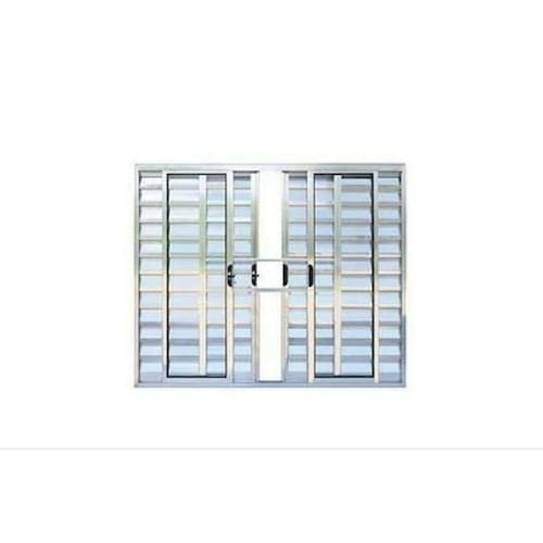 Veneziana 120x200 6 Folhas c/Grade – Alumínio Brilhante – Linha 18 Modular Janela do tipo Veneziana com 2 folhas COM GRADE veneziana fixas e 2 folhas veneziana móveis (de correr) + 2 folhas de vidro móveis (de correr). Fecho central. Já vem com vidro incluso e pronta para instalar. Não enferruja. De fabricação própria.