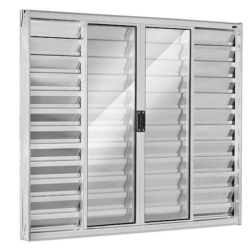 Tipo: Veneziana de correr Local indicado: quarto Quantidade de folhas: 6 folhas, sendo duas de Alumínio fixas, duas de alumínio móveis e duas de vidro moveis. Formato de abertura: central Material da janela: Alumínio Conservação do produto: Limpar somente com água e sabão neutro Tonalidade: Alumínio natural brilhante Altura: 1,00 m (medidas finais contando com os batentes) Comprimento/Largura: 2,00 m (medidas finais contando com os batentes) Profundidade: 7 ou 8 cm (largura de batente) Batentes: Sim, são feitos em alumínio Acabamento: Sim Grade: não Espessura do alumínio: 16 mm Espessura do vidro: 3 mm Tipo de vidro: liso esverdeado ou transparente Vidro antirruído: Não Borracha de vedação nos vidros: Sim Trava: Sim Fabricante: Prisma, CPF ou Jaguar Garantia: 3 meses por defeito de fábrica (SOMENTE PARA GRANDE SÃO PAULO)