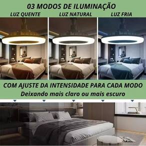 Ventilação Moderna: Lâmpada de Teto com Ventilador Oscilante 30W com Controle Design 2 em 1: Combinando Ventilador e Iluminação Todas as funções controladas através de um Controle Remoto fácil de usar Três velocidades ajustáveis do ventilador Altere a temperatura da luz entre Branco frio, Luz natural e Luz quente e também a intensidade da iluminação, deixando mais clara ou mais escura.