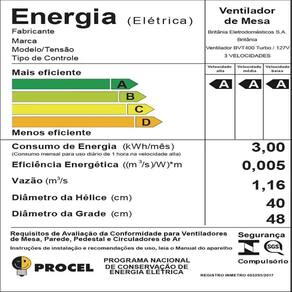 Com voltagem de 110V, o Ventilador Britania Turbo 40Cm 6 Pas Bvt4000 possui dimensões de 61,00cm de altura, 47,50cm de largura e 32,50cm de profundidade. E com peso de apenas 2,64kg, é fácil de transportar e mover para qualquer lugar da casa.