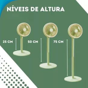Características Fácil limpeza e instalação: montagem prática e manutenção simples. Grade protetora: mais segurança durante o uso. Motor silencioso: reduz ruídos e oferece um ambiente tranquilo. Alça traseira ergonômica: facilita o transporte com uma só mão. Três velocidades ajustáveis: escolha o fluxo de ar ideal para cada momento. Design moderno: une estética e funcionalidade para o seu conforto diário.