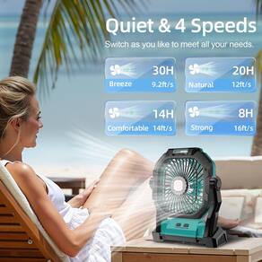 - [Compacto para aventuras ao ar livre] O equipamento portátil de acampamento com ventilador foi projetado com um tamanho compacto que cabe facilmente em sua mochila para facilitar o transporte e o armazenamento. Se você está acampando, pescando, fazendo piqueniques, grelhando ou relaxando na praia, nosso ventilador de mesa multifuncional é essencial para se refrescar e se sentir confortável na natureza.