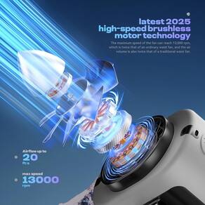 - [Ventilador de cintura portátil totalmente atualizado] Este ventilador de cintura de última geração apresenta a mais recente tecnologia de motor sem escova de 2025, atingindo impressionantes 13.000 RPM — o dobro da velocidade dos ventiladores de cinto tradicionais. Projetado com 9 lâminas em espiral e uma estrutura simplificada em forma de foguete, ele minimiza a resistência do ar, fornecendo um fluxo de ar mais focado e poderoso a velocidades de até 20 pés/s. Com um simples toque no botão, você pode desfrutar de uma brisa refrescante e instantânea que o resfria com eficiência, tornando os dias quentes de verão mais confortáveis.