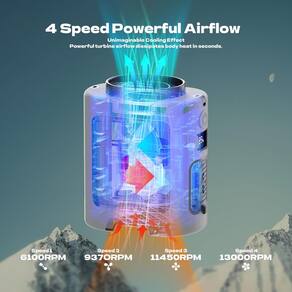 - [Fluxo de ar poderoso de 4 velocidades] O ventilador da camisa tem 4 velocidades de vento ajustáveis, que podem ser alteradas livremente de acordo com o calor. A velocidade de 6100 rpm (1ª marcha), 9370 rpm (2ª marcha), 11.450 rpm (3ª marcha), 13.000 rpm (4ª marcha) e a velocidade da primeira e da segunda marcha são equivalentes ao nível mais alto de outros ventiladores wasit. O sopro de ar poderoso e fresco mantém você fresco durante os dias quentes - a qualquer hora, em qualquer lugar.