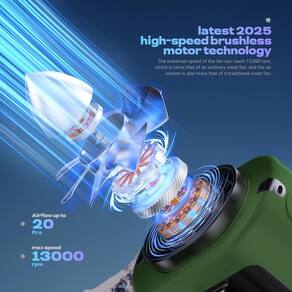 - [Ventilador de cintura portátil totalmente atualizado] Este ventilador de cintura de ponta apresenta a mais recente tecnologia de motor sem escova de 2025, atingindo impressionantes 13.000 RPM — o dobro da velocidade dos ventiladores de correia tradicionais. Projetado com 9 lâminas em espiral e uma estrutura simplificada em forma de foguete, ele minimiza a resistência do ar, fornecendo um fluxo de ar mais focado e poderoso a velocidades de até 20 pés/s. Com um simples toque no botão, você pode desfrutar de uma brisa refrescante e instantânea que o resfria com eficiência, tornando os dias quentes de verão mais confortáveis.