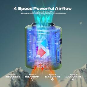 - [Fluxo de ar poderoso de 4 velocidades] O ventilador de correia tem 4 velocidades de vento ajustáveis, que podem ser alteradas livremente de acordo com o calor. A velocidade de 6100 rpm (1ª marcha), 9370 rpm (2ª marcha), 11.450 rpm (3ª marcha), 13.000 rpm (4ª marcha) e a velocidade da primeira e da segunda marcha são equivalentes ao nível mais alto de outros ventiladores wasit. O sopro de ar poderoso e fresco mantém você fresco durante os dias quentes - a qualquer hora, em qualquer lugar.