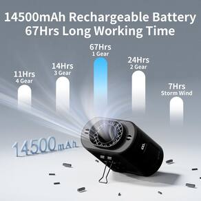 -?Tempo de trabalho de longa duração?O ventilador de cintura portátil pode funcionar continuamente por até 67 horas em baixa velocidade. Leva 6,5 horas para carregar totalmente e s