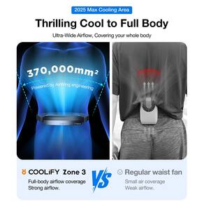 -?Tecnologia de resfriamento revolucionária | Novo material de absorção de calor?Ao contrário dos ventiladores de cintura comuns, o CooliFy ZONE 3 apresenta um anel inovador de material de resfriamento (PCM) que pode reduzir a temperatura da pele em 60° F em segundos. Pode ser utilizado tanto em roupas internas quanto externas, seu ajuste ergonômico pode se agarrar confortavelmente à pele, absorvendo o calor por meio da liquefação do material e liberando energia de resfriamento à medida que se solidifica, mantendo continuamente um conforto estável de 60° F~ O design do anel removível permite uma limpeza fácil. Você apreciará o fascínio da nova tecnologia de resfriamento.