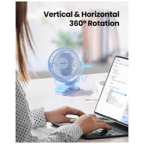 O Ventilador de Clipes Portátil Gaiatop modelo CF40 é equipado com bateria recarregável de 2000 mAh, proporcionando autonomia de 3,5 a 10 horas conforme a velocidade selecionada, com suporte para uso durante o carregamento via USB. Possui motor sem escovas de alta performance e 5 lâminas de plástico otimizadas aerodinamicamente para fluxo de ar potente e operação silenciosa com longa durabilidade. Oferece 3 velocidades ajustáveis por controles touch e rotação completa de 360° horizontal e vertical para posicionamento flexível.