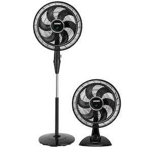 O ventilador vem com dois suportes que possibilitam sua utilização na mesa ou como coluna, fácil para montar e desmontar, além de contar com inclinação acionada por botão lateral que auxilia de forma rápida e fácil o ajuste garantindo o direcionamento do vento diretamente para a área desejada de acordo com a sua necessidade.