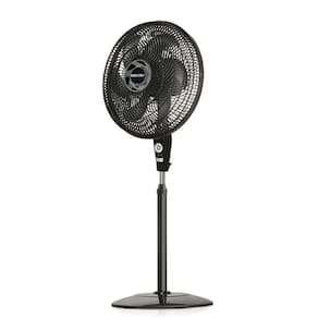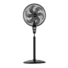Tem ajuste de altura, oscilação horizontal, inclinação vertical e grade removível para limpeza.