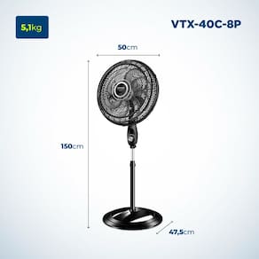 O Ventilador Super Turbo VTX-40C-8P da Mondial possui 40 cm de diâmetro e hélice de 8 pás, o que promove uma circulação de ar mais eficiente e garante mais frescor ao ambiente. Com coluna ajustável entre 1,19 e 1,50 metros, o ventilador permite ajuste da altura do vento e 3 variações de velocidade, Máxima Turbo, Média Conforto e Mínima Silencioso. Além disso, o sistema de ventilação alia a potência para refrescar ao baixo nível de ruído, proporcionando o silêncio necessário para uma excelente noite de sono. Com fácil organização e transporte, possui alça traseira e porta fio. Aproveite a qualidade que só a Mondial oferece!