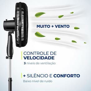 CONTROLE DE VELOCIDADE: As 3 opções de velocidade permitem adequar o vento à sua necessidade: Máxima Turbo, Média Conforto e Mínima Silencioso.