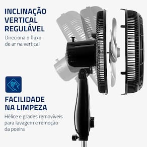 Facilidade na limpeza: As grades (frontal e traseira) e a hélice são removíveis e facilitam a limpeza, simplificando a lavagem e a remoção da poeira.