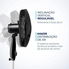 Descricao O ventilador de colunaSuper Power VSP-40C-Bpossui 40 cm de diametro e helice com 6 pas, garantindo um ambiente mais refrescante e agradavel. Com coluna ajustavel entre 1,19 e 1,50 metros, o aparelho permite ajuste da altura do vento. O sistema de ventilacao da Mondial apresenta baixo nivel de ruido, assegurando o silencio necessario para uma excelente noite de SUPER POWER:A linha de Ventiladores Super Power possui 40cm de diametro e 6 Pas. O design, aliado a potencia, promove maior intensidade do vento e e garantia de um ambiente fresco e AJUSTAVEL:Possui regulagem de 1,19 a 1,50 metros, permitindo o ajuste ideal da altura do SILENCIO E CONFORTO:O sistema de ventilacao da Mondial apresenta baixo nivel de ruido, assegurando o silencio necessario para momentos de concentracao e uma excelente noite de DISTRIBUICAO DE AR:O Sistema Oscilante Continuo amplia o raio de alcance do vento no ambiente, permitindo uma distribuicao de ar mais eficiente nos comodos da casa.INCLINACAO VERTICAL REGULAVEL :Para um direcionamento ideal do fluxo do ar.CONTROLE DE VELOCIDADE:As 3 opcoes de velocidade permitem adequar o vento a sua necessidade: Maxima Turbo, Media Conforto e Minima Silencioso.FACILIDADE NA LIMPEZA :A grade frontal removivel oferece mais facilidade na limpeza das helices, o que simplifica a lavagem e a remocao de poeira, e garante melhor qualidade do DE + PORTA-FIO:Alem do design compacto, a alca traseira permite que o ventilador seja transportado entre os comodos da casa com facilidade. Com o porta-fio embutido, voce armazena o fio eletrico dentro do aparelho apos o uso.*Imagens meramente ilustrativas.Especificacao Tecnica Cor:PretoVoltagem (Tensao): 110VItens inclusos:01 Ventilador - Manual de instrucoesPotencia:140WDimensoes do produto:150cm x 45cm x 41cmNumero de velocidades:3 velocidadesQuantidade de pas:6 pasColuna ajustavel:SimTipo de ventilador:Ventilador de ColunaPeso:5,70kgInclinacao regulavel:SimOscilante:Sim