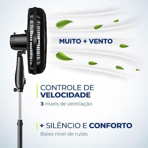 CONTROLE DE VELOCIDADE: As 3 opções de velocidade permitem adequar o vento à sua necessidade: Máxima Turbo, Média Conforto e Mínima Silencioso.