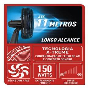Design e Funcionalidade Com acabamento nas cores azul e preto, o Ventilador X-Treme VE7C combina elegância e robustez. Sua coluna ajustável permite posicioná-lo na altura ideal, garantindo conforto e eficiência na ventilação. A grade de 49 cm de diâmetro e as 7 pás otimizam a distribuição de ar, proporcionando um ambiente fresco e agradável.