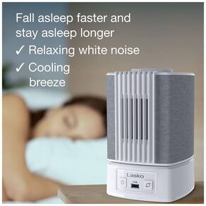Descubra o Ventilador de Mesa Lasko 20 cm SlumberBreeze com Máquina de Ruído Branco: