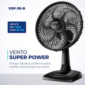 O Ventilador Mondial Super Power é maior e possui 3 velocidades. Possui baixo nível de ruído, sistema de oscilação lateral, inclinação vertical reversível. É compacto e tem baixo consumo de energia. Suas hélices possui design aerodinâmico que proporciona vento forte. Por ele produzir menos barulho, você pode dormir tranquilo em qualquer uma das 3 velocidades. Você pode usar um sistema oscilante em espaços maiores. A inclinação ajustável verticalmente direciona o fluxo de ar para cima ou para baixo. Como o grau frontal é removível, também é simples de montar e desmontar para limpeza. Ele também é fácil de transportar, pois possui uma alça de transporte. A base antiderrapante agora agrega mais segurança.