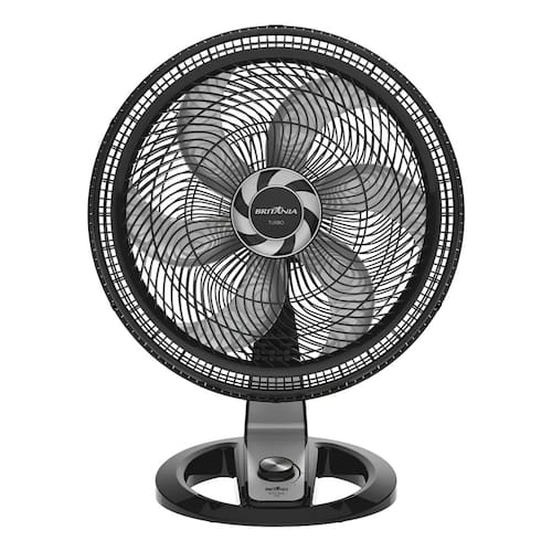 Ficha Técnica Detalhada: Marca: Britânia Modelo: BVT510P Turbo Voltagem: 127V Potência: 160 Watts Quantidade de Pás: 6 pás Diâmetro da Grade: 47 cm Diâmetro da Hélice: 40 cm Velocidades: 3 níveis Consumo: 0,16 kWh Cor: Preto Material: Plástico Tipo de Ventilador: Mesa ou Parede Sistema de Oscilação: Horizontal automática Inclinação Vertical: regulável Fusível Térmico de Segurança: Sim Base Antiderrapante: Sim Alça para Transporte: Sim