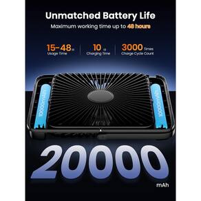 - Desempenho de resfriamento poderoso e eficiente: equipado com uma bateria recarregável de alta capacidade de 20000 mAh, permanece fresco o dia todo com até 15 ~ 48 horas de operação contínua com uma única carga completa. Suas configurações de 4 velocidades e design de 5 lâminas fornecem resfriamento poderoso, mas silencioso, tornando-o perfeito para escritórios, casas e aventuras ao ar livre
