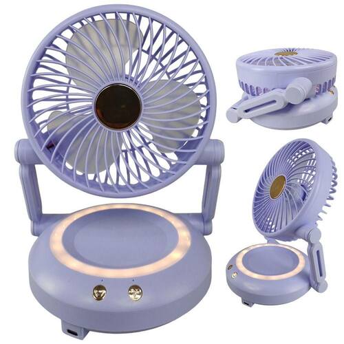 Ventilador de Mesa Dobrável 3W 16cm 3 Velocidades Lilás BSL3813 Bivolt com LED Silencioso USB