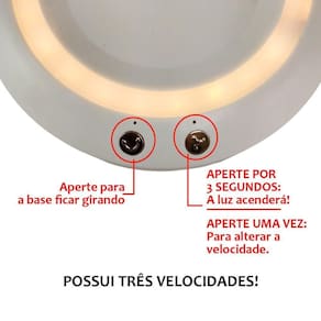 LED na base: ilumina o ambiente para leituras e maquiagens.