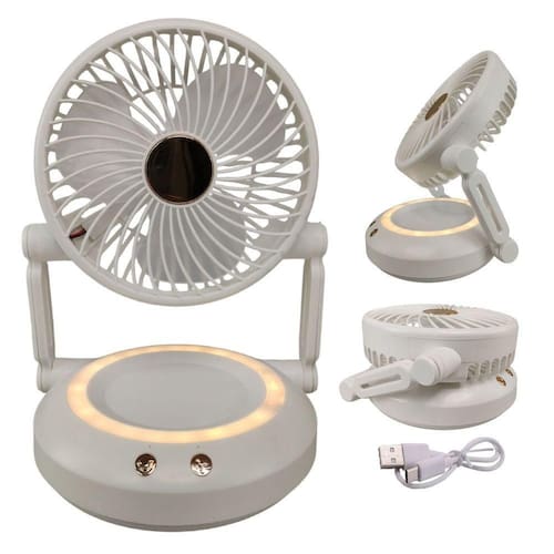 Ventilador de Mesa Dobrável Retrátil 3W Hélice 16cm 3 Velocidades Branco BSL3813 Luz LED USB Portátil Silencioso Bivolt