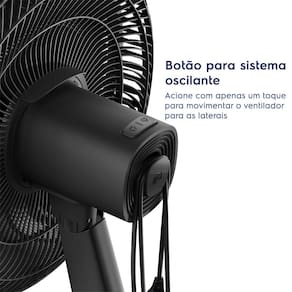 Para fixar o fluxo de ar em um ponto específico ou distribuir para as laterais com o movimento horizontal do ventilador, basta pressionar o botão intuitivo do sistema oscilanete. E, para ainda mais conforto, é possível escolher entre três velocidades: Mínima, para um funcionamento silencioso; Média, que reduz o consumo de energia em até 20%³; ou Turbo, para máxima refrescância nos dias mais quentes.