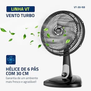O Ventilador de Mesa Mondial Turbo VT-30-NB foi projetado para garantir um ambiente mais fresco e arejado. Com 30 cm de diâmetro e uma hélice de 6 pás, seu design aerodinâmico proporciona uma forte ventilação e uma melhor distribuição de ar. O aparelho conta com três opções de velocidade (Máxima Turbo, Média Conforto e Mínima Silencioso) e um sistema oscilante contínuo, permitindo que você ajuste o fluxo de ar para o seu conforto. Além disso, o ventilador apresenta baixo nível de ruído, sendo ideal para uso em qualquer ambiente, inclusive durante o sono ou momentos de concentração.