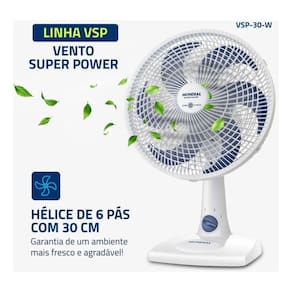 Refresque seus ambientes com o Ventilador de Mesa Mondial VSP-30-W, projetado para oferecer eficiência, silêncio e conforto. Equipado com 6 pás e uma hélice de 30 cm, ele proporciona uma ventilação potente e abrangente, ideal para enfrentar os dias mais quentes.