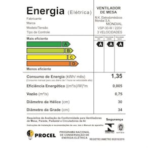 Ventilador de Mesa Mondial 6 Pás 30cm VSP-30B 60W - 110V