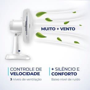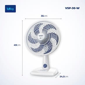 Com 30 cm e 3 velocidades, o Ventilador de Mesa Mondial 6 Pás Super Power Branco VSP-30-W garante mais vento. Ele tem baixo nível de ruído, sistema oscilante lateral, inclinação vertical regulável, além ser compacto e ter baixo consumo.