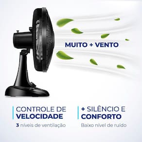 Como ele faz menos barulho, com qualquer uma das 3 velocidades, você dorme com ventinho e silêncio garantidos. Para ambientes mais amplos, você pode usar seu sistema oscilante. Já sua inclinação vertical regulável direciona o fluxo de ar para cima ou para baixo. Como a grade frontal é removível, ele ainda é fácil de montar e desmontar para limpeza.