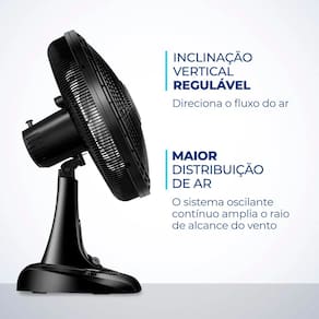 Cor Preto Voltagem (Tensão) 220v Itens inclusos 01 Ventilador; Manual de Instruções Potência 140W Dimensões do produto 62,50cm X 45,00cm X 32,00cm (AxLxP) Número de velocidades 3 Quantidade de pás 6 Coluna ajustável Sim Tipo de ventilador Ventilador de Mesa Peso 2,45 Kg Inclinação regulável Sim Oscilante Sim Garantia 1 Ano