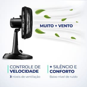 - CONTROLE DE VELOCIDADE: As 3 opções de velocidade permitem adequar o vento à sua necessidade.