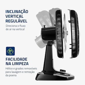 ALÇA DE + PORTA-FIO: Além do design compacto, a alça traseira permite que o ventilador seja transportado entre os cômodos da casa com facilidade. Com o porta-fio embutido, você armazena o fio elétrico dentro do aparelho após o uso.