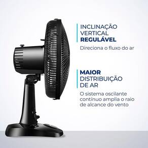 Características Principais: Altura: 49,0cm Largura: 35,0cm Comprimento: 36,5cm Peso: 1.6 Kg Alimentação: Disponível em 110V ou 220V Cor: Preto Marca: Mondial Nível de Ruído: Baixo Número de Pás: 6 Pás Potência: 60W Tipo do Ventilador: Ventilador de Mesa Número de Velocidades: 3