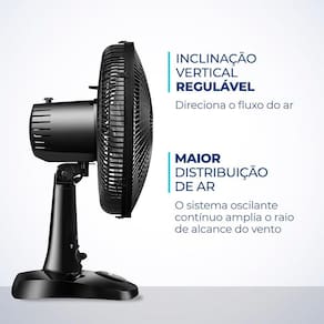 Características Adicionais: Vento Super Power Alça de Transporte Porta-Fios Embutido Inclinação Vertical Regulável Grade Frontal Removível: Facilidade na Limpeza Maior Distribuição de Ar: Sistema Oscilante Contínuo Controle de Velocidade: Máxima Turbo, Média Conforto, Mínima Silencioso