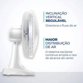 VANTAGENS: Baixo nível de ruído, com sistema oscilante e inclinação vertical, também com hélice com design aerodinâmica, grade frontal removível.