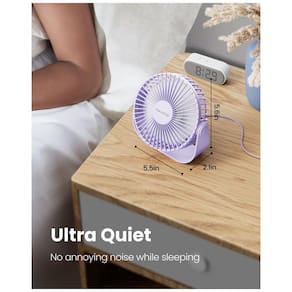 O Ventilador de Mesa USB Gaiatop modelo TF55B oferece 3 velocidades ajustáveis: velocidade 1 (suave, 3,1 m/s, 1500 RPM), velocidade 2 (alta, 4,0 m/s, 2000 RPM) e velocidade 3 (forte, 4,8 m/s, 2500 RPM), controladas por botões touch. Equipado com motor atualizado e 5 lâminas de plástico, proporciona fluxo de ar potente com ruído máximo de 40 dB para operação silenciosa. Alimentado via USB com 5 V e 5 W, compatível com PC, laptop, power bank, adaptador AC ou carregador automotivo, inclui cabo de 1,5 m.