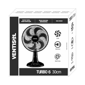 Ventilador de mesa ventisol 30cm turbo economy 6 pás preto