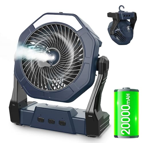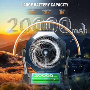 - ?Ângulo ajustável de 330° e design de gancho?O ventilador portátil operado por bateria suporta ajuste de rotação de 330°, permitindo que você obtenha fluxo de ar de diferentes direções. E com ganchos dobráveis embutidos, nosso ventilador externo pode ser melhor pendurado em tendas, carros, galhos, paredes, ao ar livre e simplesmente em uma mesa em casa ou no escritório.