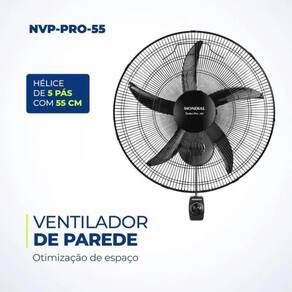 As especificações técnicas desse ventilador são as seguintes: - Marca: Mondial - Modelo: NVP-PRO-50 - Cor: Preto - Voltagem Tensão : 127V ou 220V - Potência: 150W - Dimensões do produto: 55cm x 55cm x 45,6cm AxLxP - Número de velocidades: 3 Velocidades - Quantidade de pás: 5 pás - Coluna ajustável: Não - Tipo de ventilador: Ventilador de Parede - Peso: 3kg - Inclinação regulável: Sim - Oscilante: Sim
