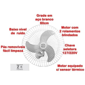 Ventilador robusto, potente e vento forte ideais para ambientes que requerem bastante ventilação. Promovem uma ótima ventilação de ar proporcionando um ambiente refrescante. Características e Especificações: