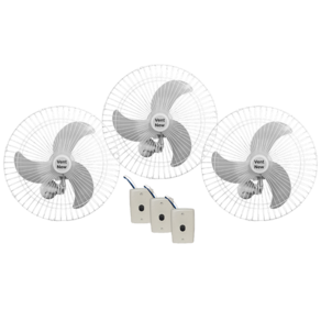 Kit composto de 3 Ventiladores Oscilantes de Parede Vent New 60cm Bivolt 200w Grade Aço Branco Código 00112