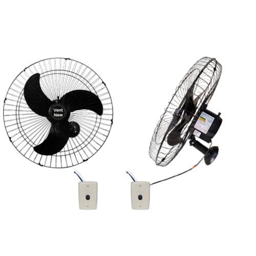 Kit composto de 2 Ventiladores Oscilantes de Parede Vent New 60cm Bivolt 200w Grade Aço Preto Código 00109
